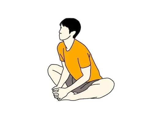 次は股関節の柔軟性を上げるためのストレッチになります。このストレッチは上の図の様に、両方の足の裏を合わせて股関節を外に開いていきます。