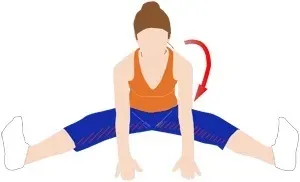 次は両足をしっかりと開いた状態で、体を前に倒していきます。この時も限界より少し手前で伸ばすことをおすすめ致します。足の開きに関しては45度から90度位の間であれば、問題はないと思います。
