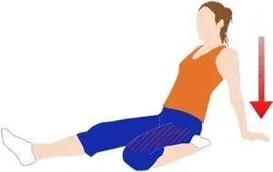 最後は右下の図の様に、片足を曲げた状態から、伸ばした方の足に向かって体を倒していきます。この時もなるべく限界より少し手前で止めてから、体を伸ばすことをおすすめ致します。