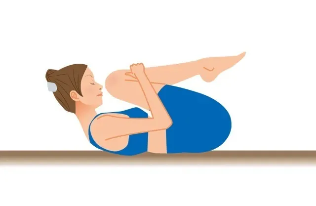 次に行うのは、両方の膝を両手で抱え込む様に胸に近づけます。必ず一つ前のストレッチをやってから、このストレッチをやるようにしましょう。午前中はどうしても、腰部付近の筋肉が硬くなることが多いため、運動を始める際はしっかりと腰部の筋肉を伸ばすことを心がけましょう。